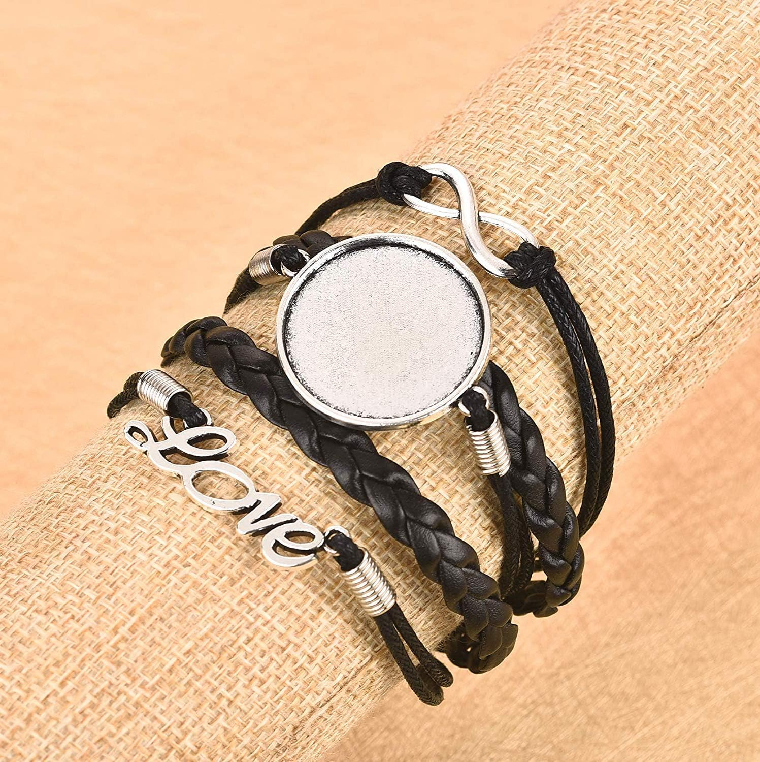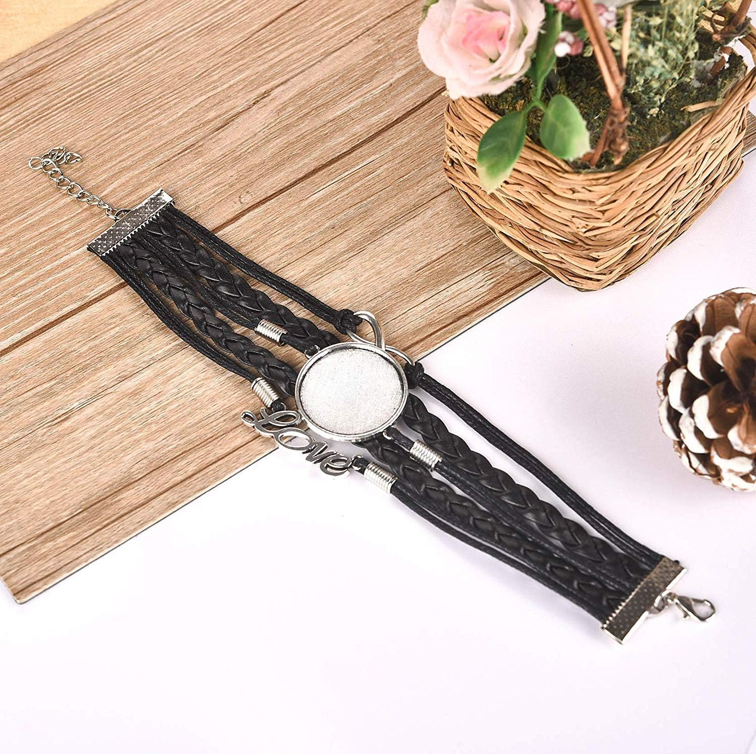 25Mm 10Pcs Woven Leather Bracelet Blank Base Bezel Tray Fit 25Mm round Glass Cabochon for Jewelry Making