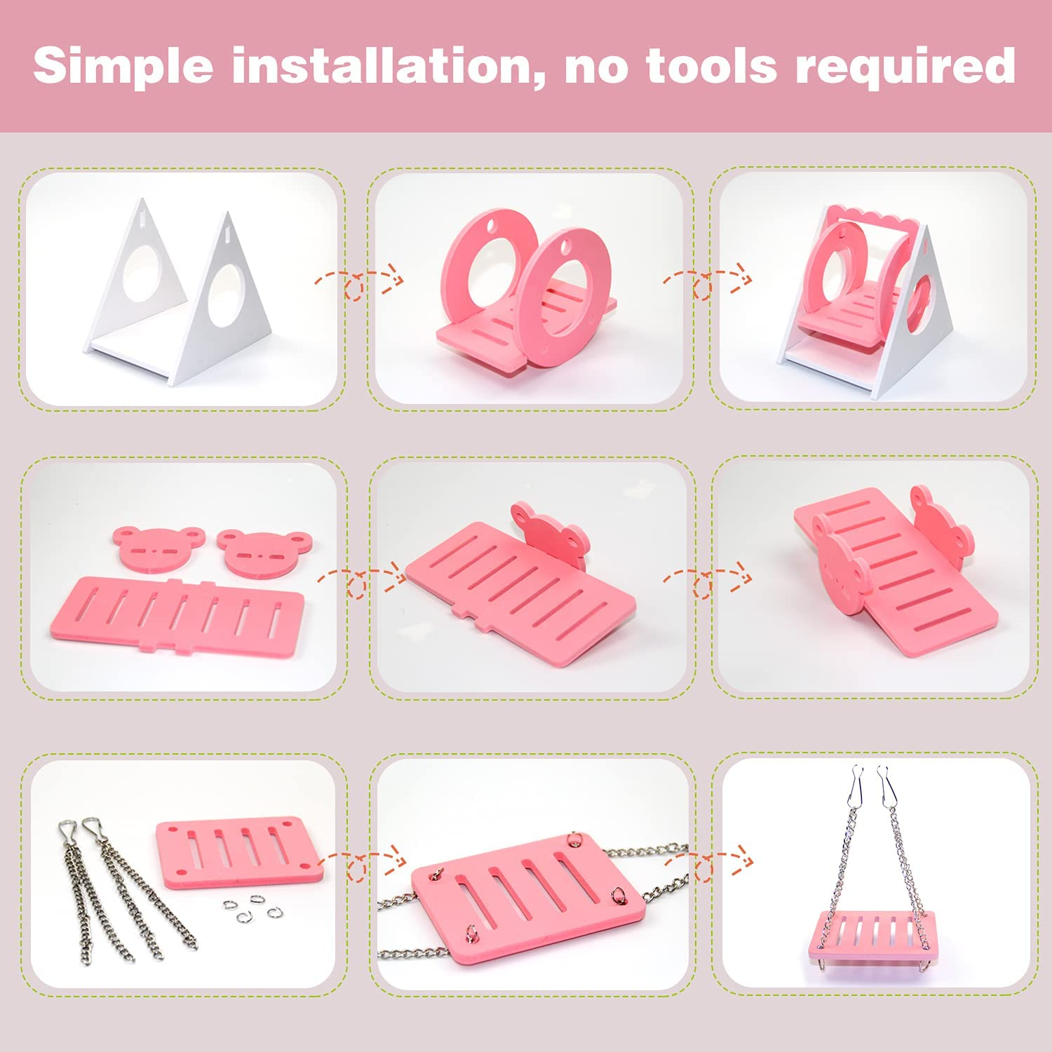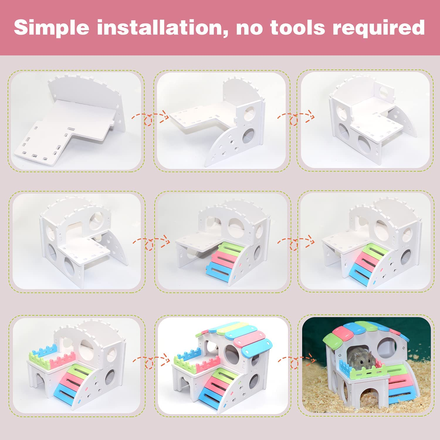 We believe that you can assemble this dwarf hamster toys and accessories step by step on you own.