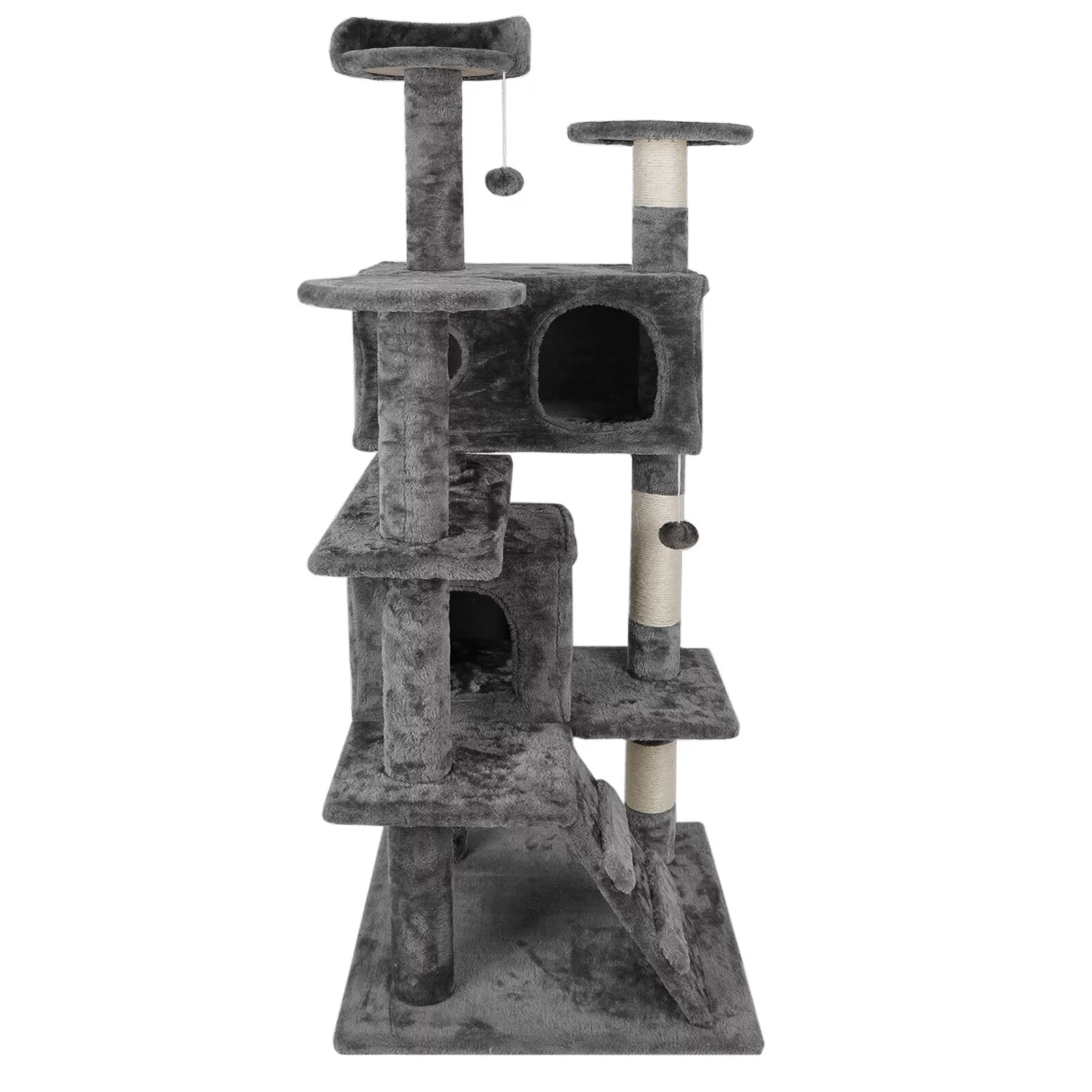 - Durable & Sturdy:Super solid construction,The particle wood platform and stakes assembled provide steady platform for your cat to climb up and down freely. Sturdy and stable design makes this cat tower a fun center to jump, climb, have fun and lounge.