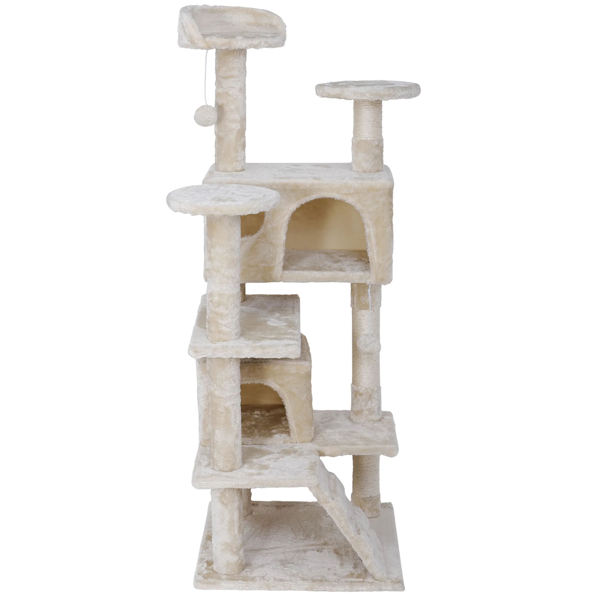 - Large Space:This cat condo will be large enough for your big cat, fun enough for your little one, multiple scratching posts are covered by natural sisal ropes, several layers layout which is perfect for your cats to scratch, climb, play and active. The cat condo hangs two fur balls which will add extra fun for cats, your cats will love their new castle!
