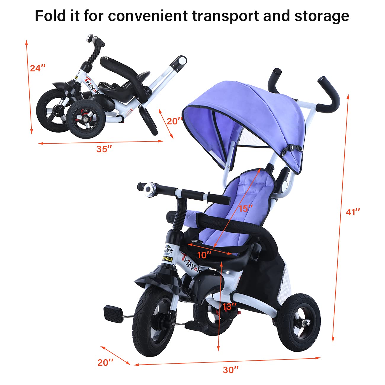 - ❤[Foldable Design & Easy to Assemble] – Foldable design for convenient carrying and storage, no worry for carrying when having a trip. You can easily assemble our tricycle without any auxiliary tools since most of the parts are quickly removable, it won’t take you more than 10 minutes to assemble it.
