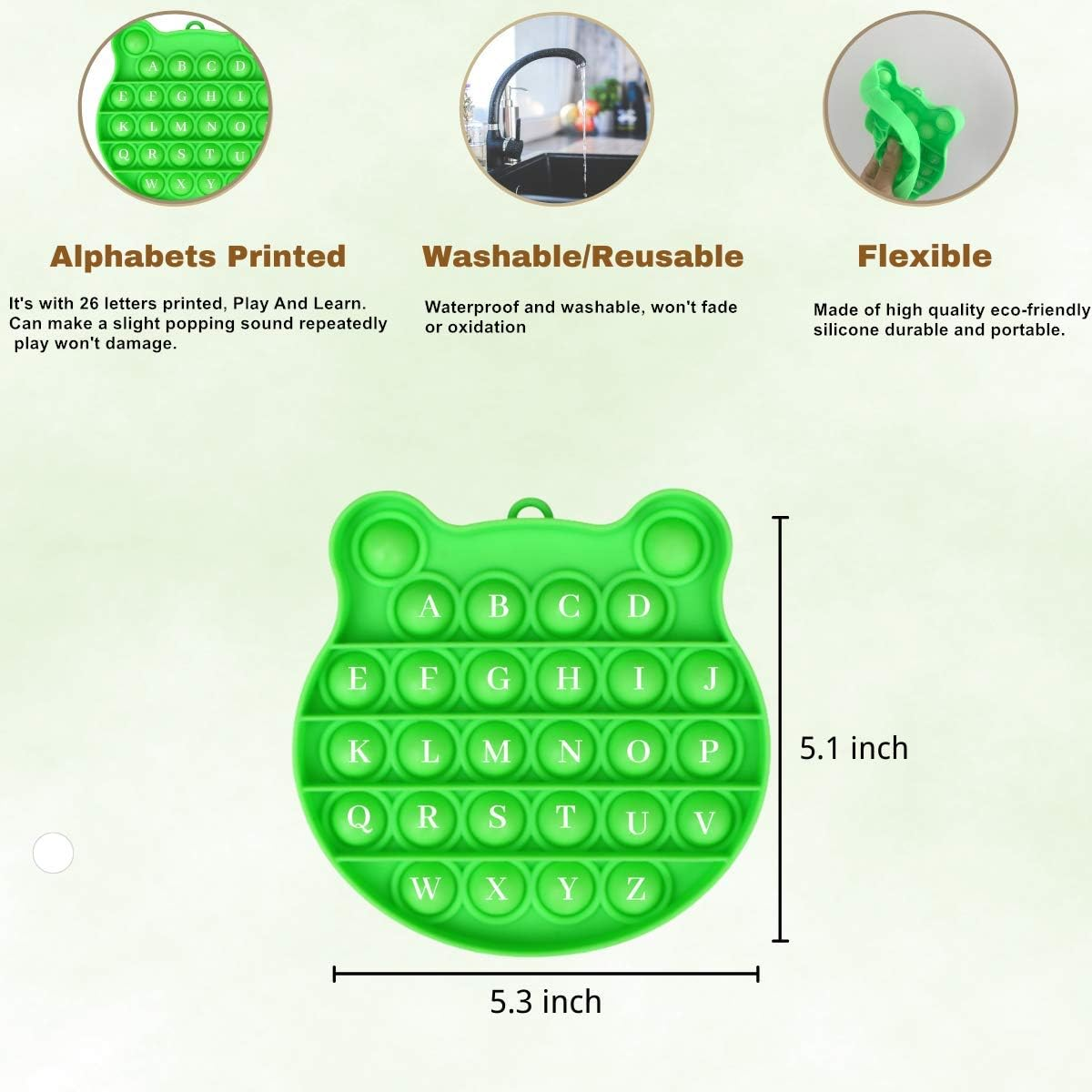 - [ Endless Fun ] The popping toy has endless fun, press the bubbles down and they make a slight popping sound, then flip fidgets toy over and start again! Bright colors, beautiful Letter Print and pleasant sounds are sure to please any child.