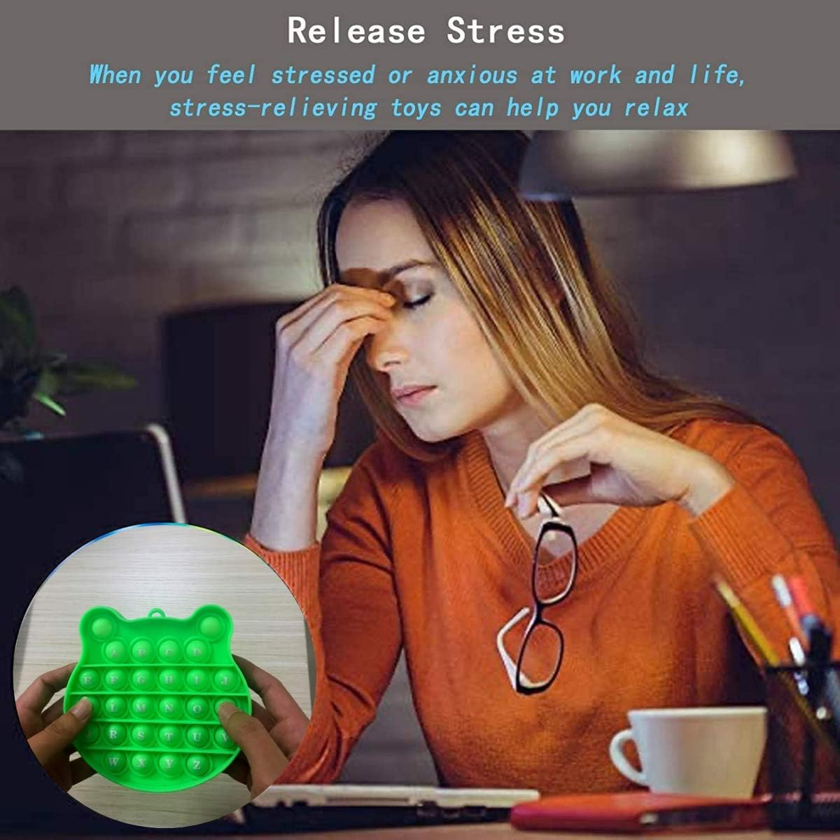 One person say out any letter, the other person presses the corresponding bubble within two seconds, the player who presses down the wrong bubbles loses. It is the most newest and unique educational toys and sensory toys on the market.