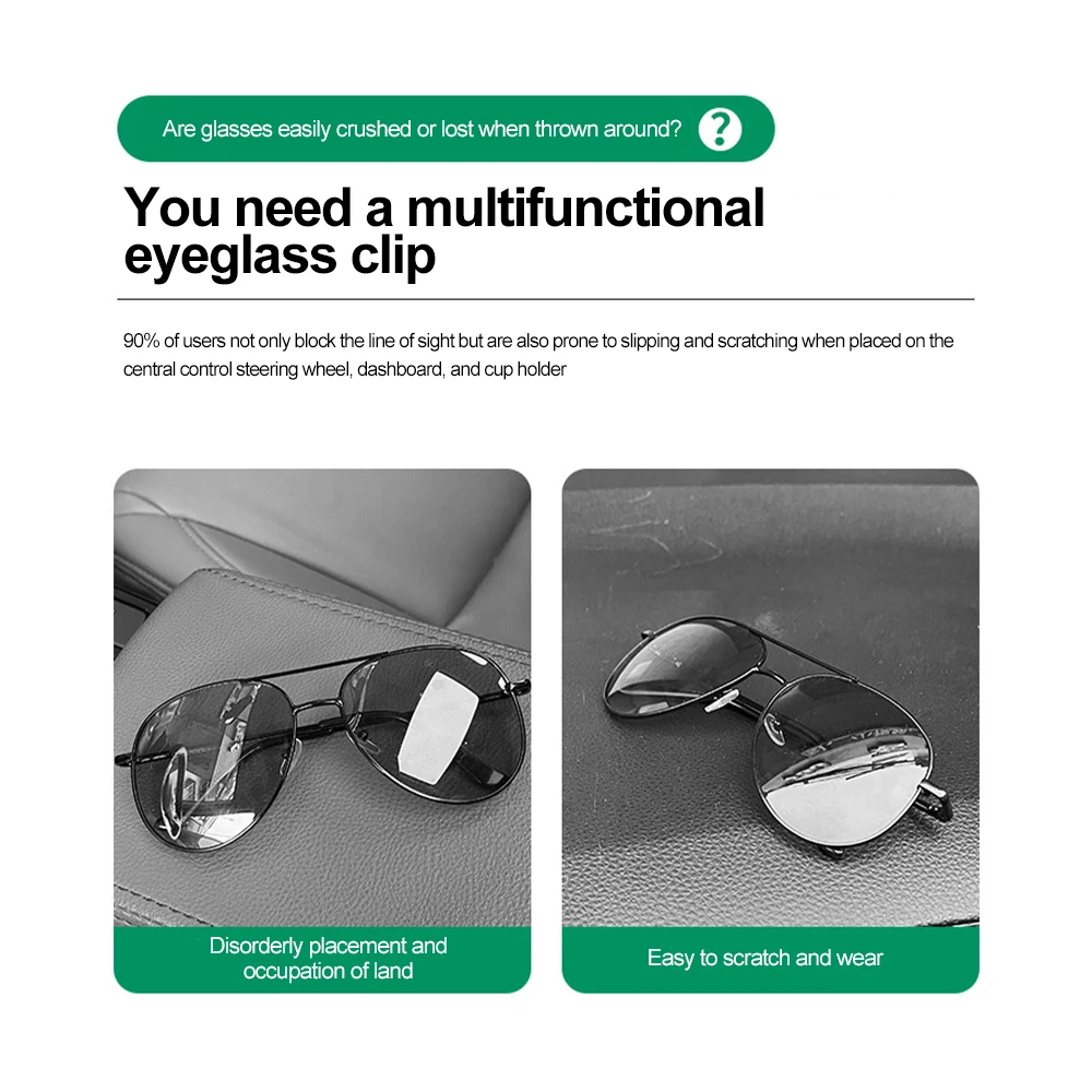 • Universal Car Auto Sun Visor Eyeglass Hanger :This product is designed to hang on any car’s sun visor, providing a convenient and visible place to store your glasses. It’s perfect for those who are always on the go and need a reliable place to keep their eyewear.