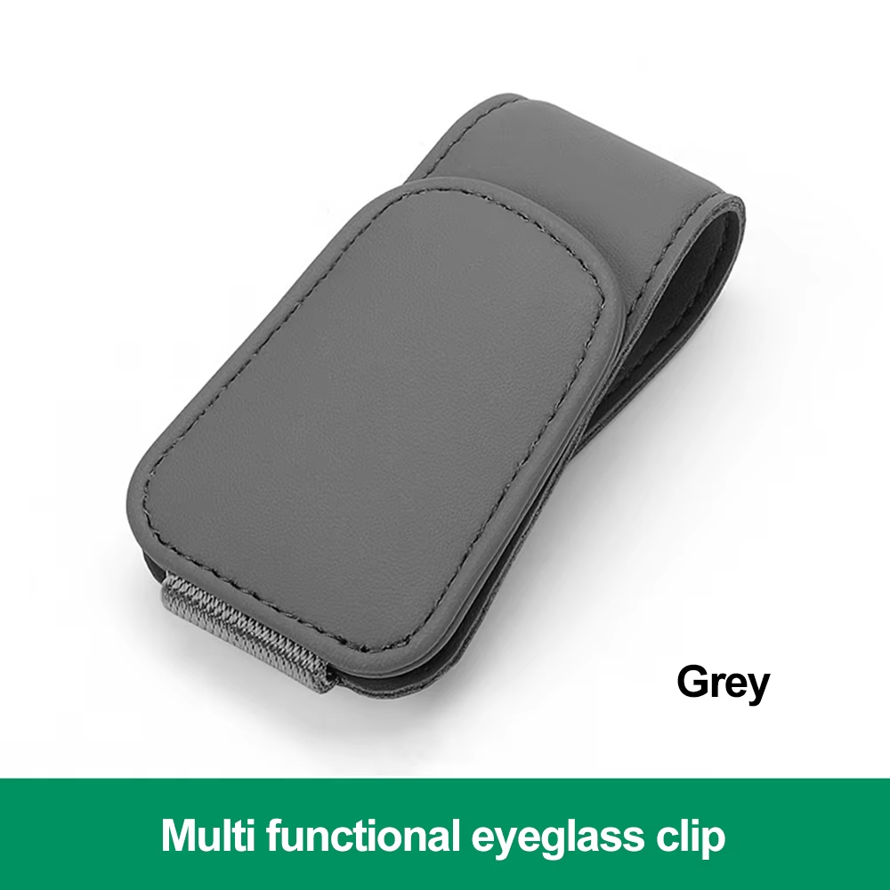• Leather Glasses Holder :Crafted from high-quality leather, this glasses holder offers a luxurious feel and long-lasting durability. It’s not just an accessory, but also a stylish addition to your car’s interior.