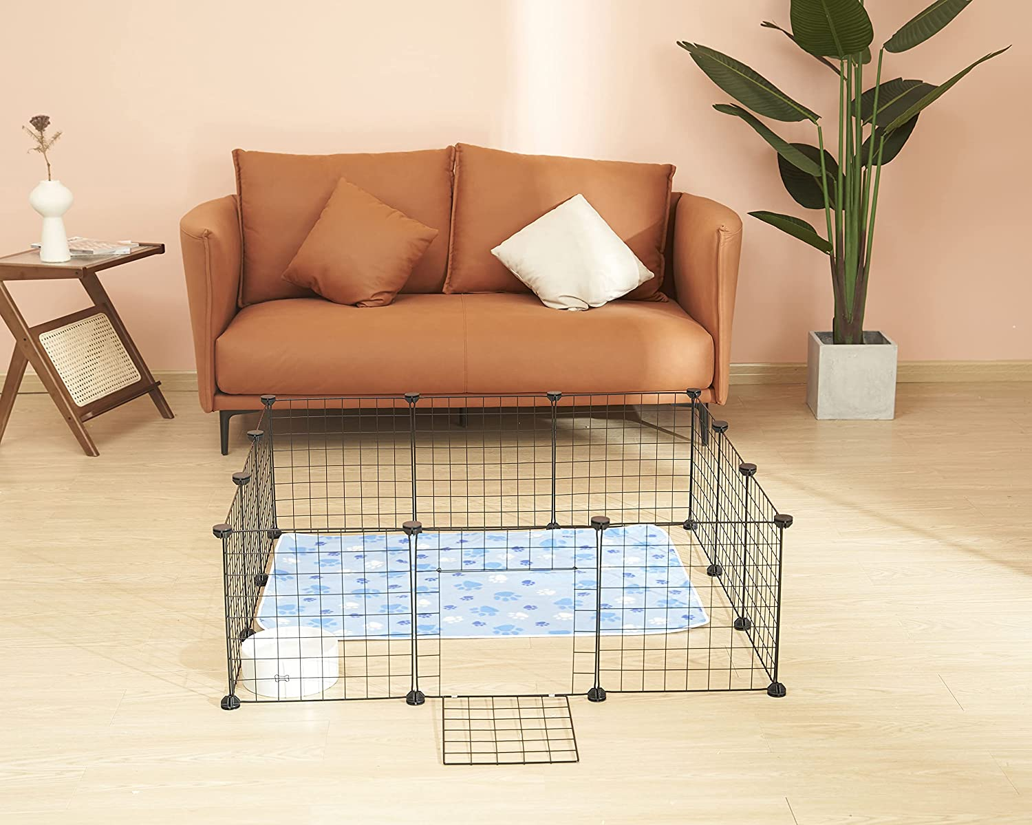• [Various Combinations for Pets’ Playground]: Each panel’s size: 14×14″. Color: Black. This pet playpen can be changed into various combinations to meet your need, but only suitable for small animal, such as small little puppies, kitten, rabbits, guinea pigs, mink, turtles (weight: less than 7 pounds). You can assemble them as the instructions suggested, besides, you can create a pet delivery room which can help to soothe expectant mothers.