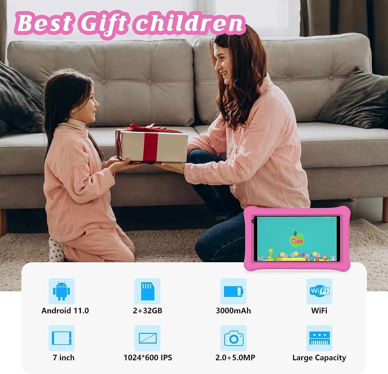- Package includes: 1 x 7 inch Kids Tablet, 1 x Protective Case, 1 x Type C cable, 1 x Charger