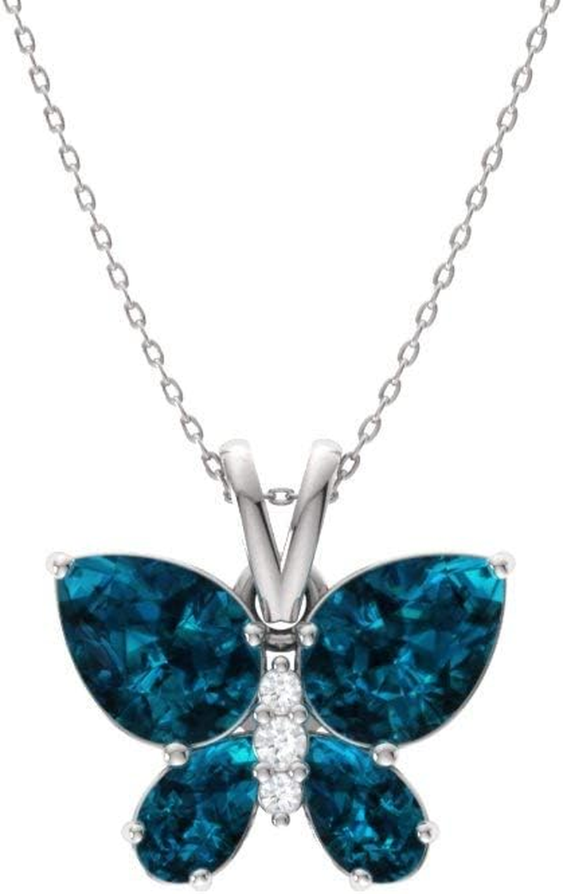 Natural and Certified Gemstone and Diamond Butterfly Petite Necklace in 14K White Gold | 1.04 Carat Pendant with Chain