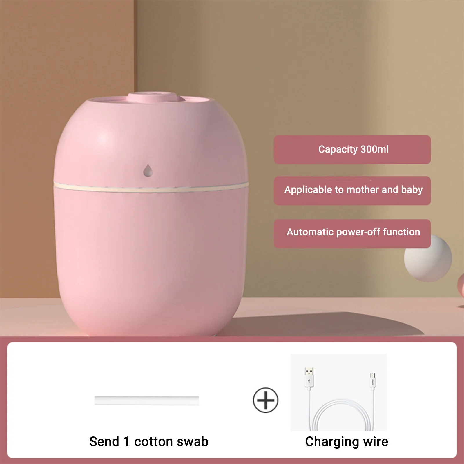 [PORTABLE MINI HUMIDIFIER] -This humidifier has a 300ML water tank, Small but powerful humidifiers quietly working for cool . With instant refill and easy to clean. The best partner to enjoy healthier when traveling, bedroom, office, baby room and car with USB power supply.