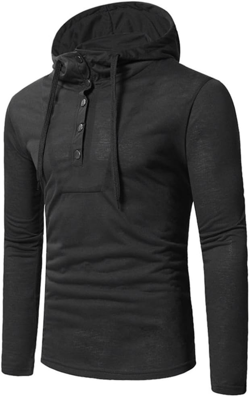 Wintialy Fashion Men’S Autumn Fastener Long Sleeved Hoodie Sweatshirts Top Blouse Black