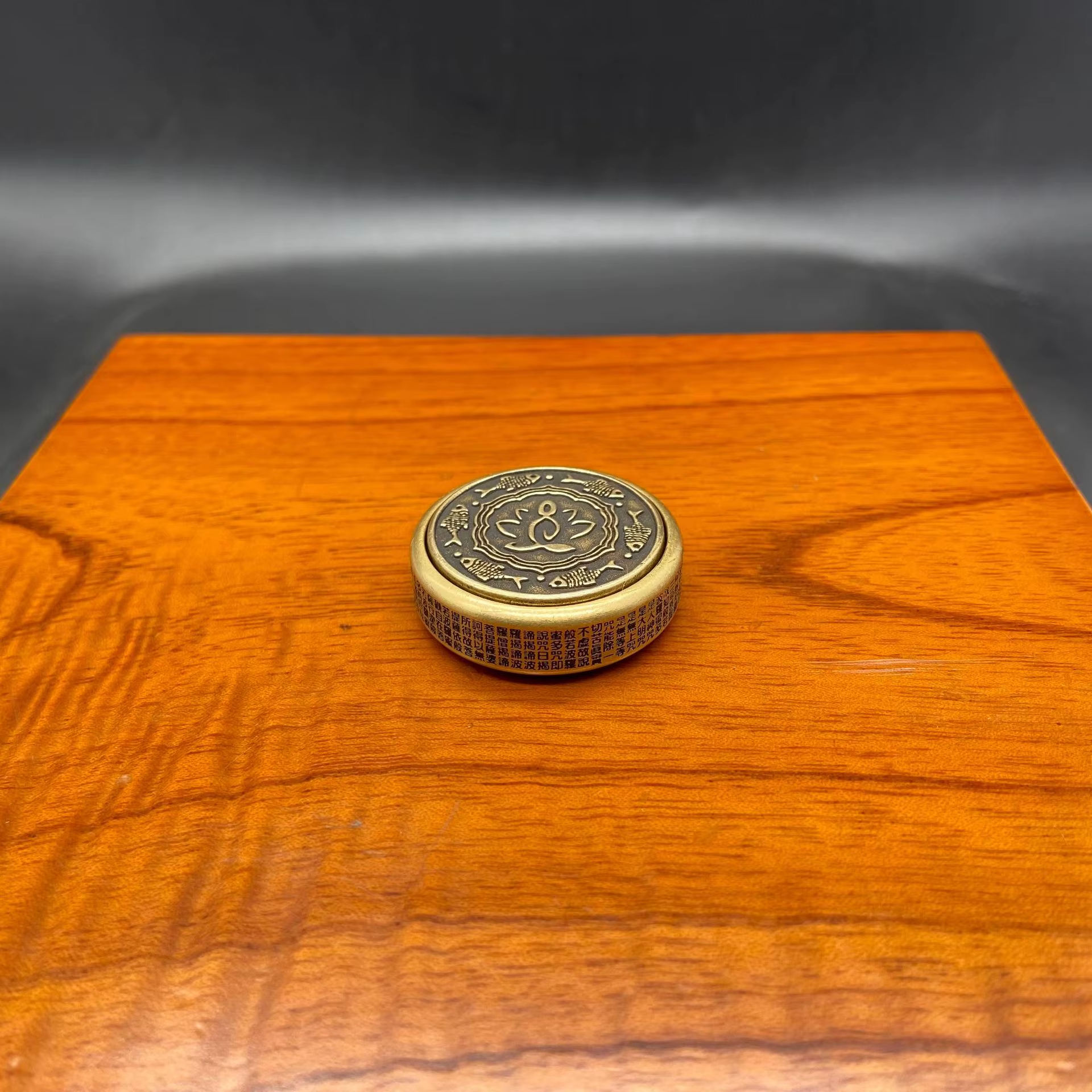 The overall material of the fidget spinner is copper, and the surface has been aged and looks very retro. The pattern on the front is a large Buddha character, the back is a Buddhist classic meditation picture, and the pattern on the edge is Buddhist scriptures. The carving is very delicate. This is a Buddhist style fidget spinner, if you are interested in Buddhist culture, this fidget spinner is perfect for you.
